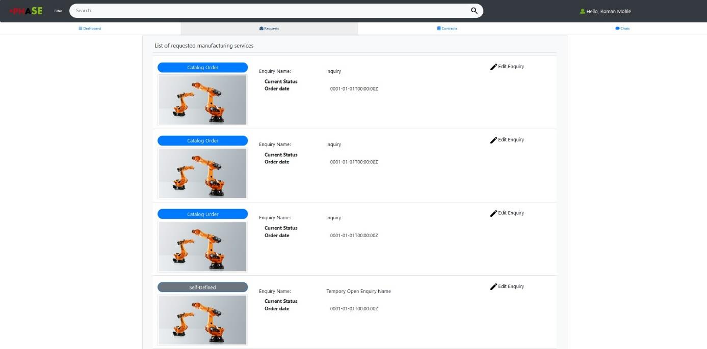 To illustrate the research results, PDTec AG set up a demonstrator to show how customers and production providers can communicate with each other and how production services can be purchased: